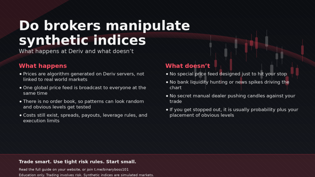 Specifically, when it comes to synthetic indices—markets that exist entirely on our servers rather than on the floor of the NYSE or NASDAQ—the concern is natural. If we build the track, owning the cars and the finish line, what’s stopping us from moving the goalposts?